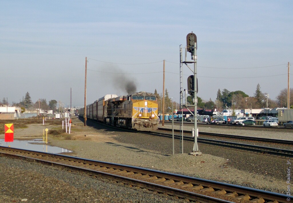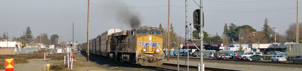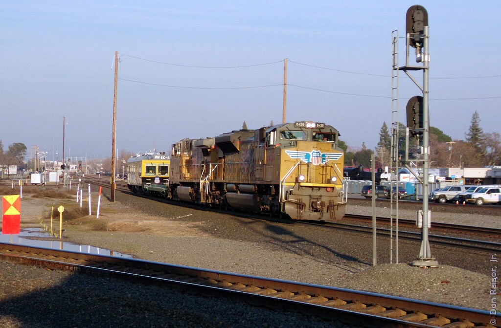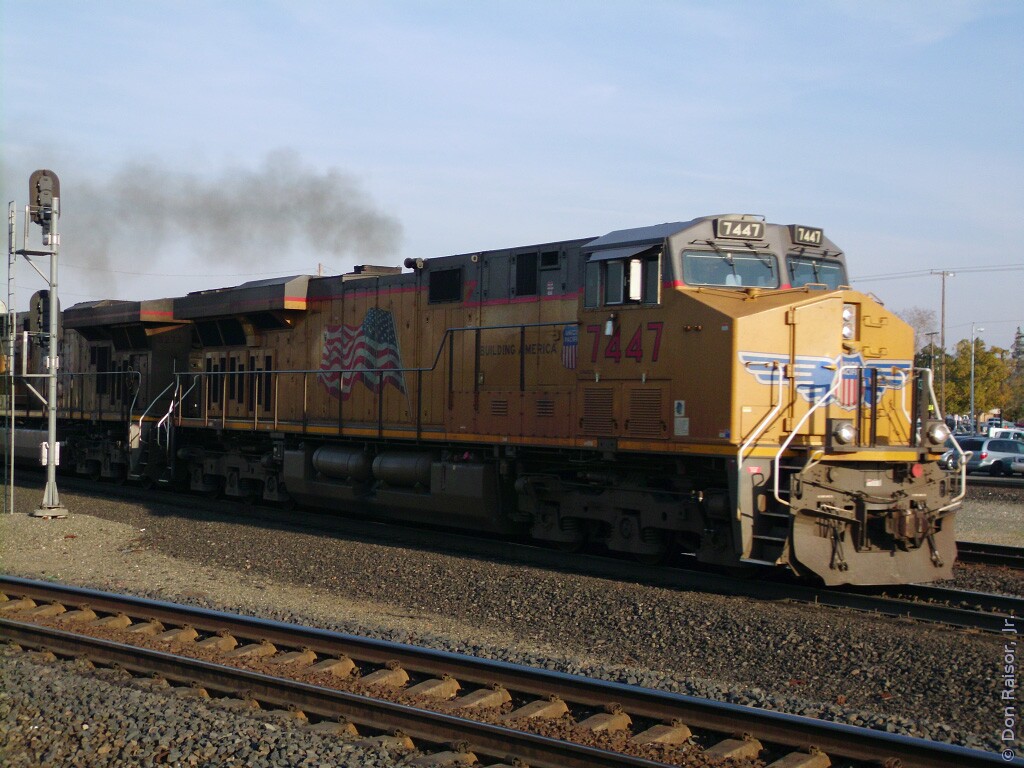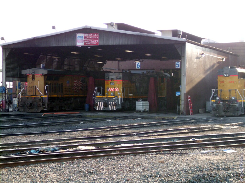 Photographs of locomotives, trains and other railroad equipment, mostly in the vicinity of the J. R. Davis Yard in Roseville California.