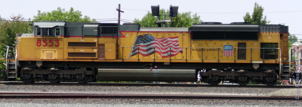 Photographs of locomotives, trains and other railroad equipment, mostly in the vicinity of the J. R. Davis Yard in Roseville California.