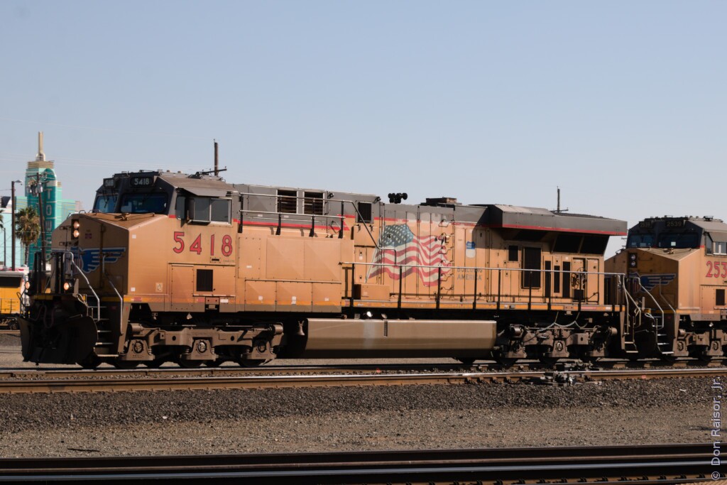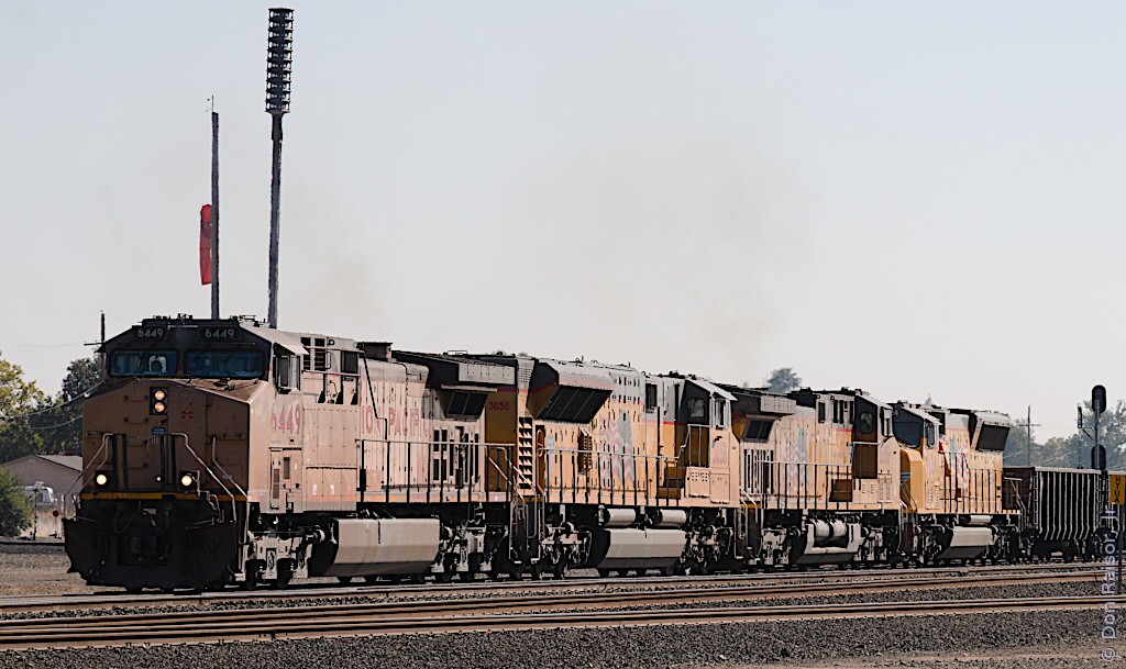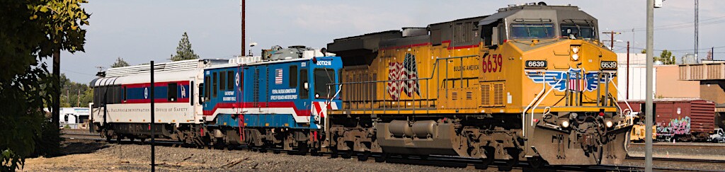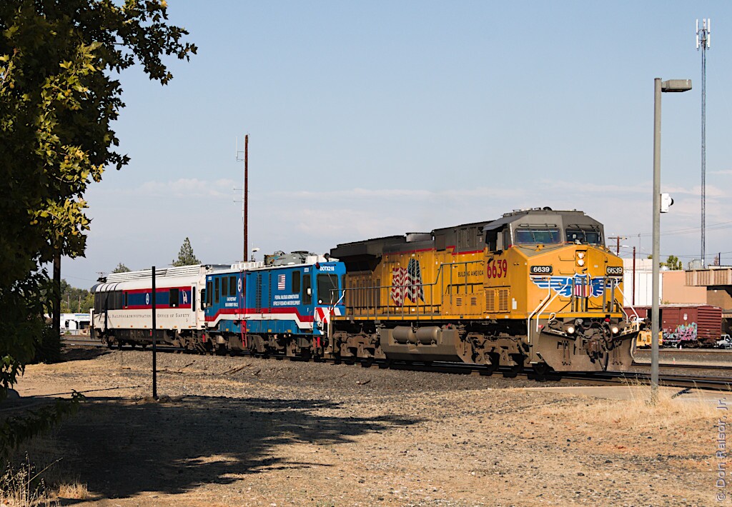 UP6639 is pushing it's inspection train to a spur a short distance away where it will be tied down.