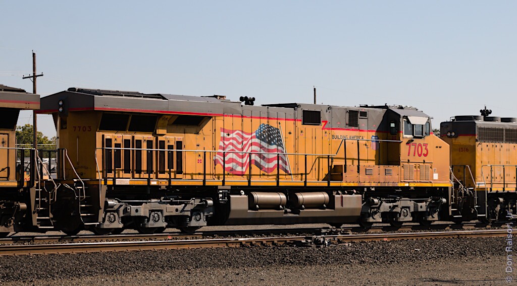 That odd looking white spot on the end of this engine is just the sun reflecting off the windshield of the engine in front of it.