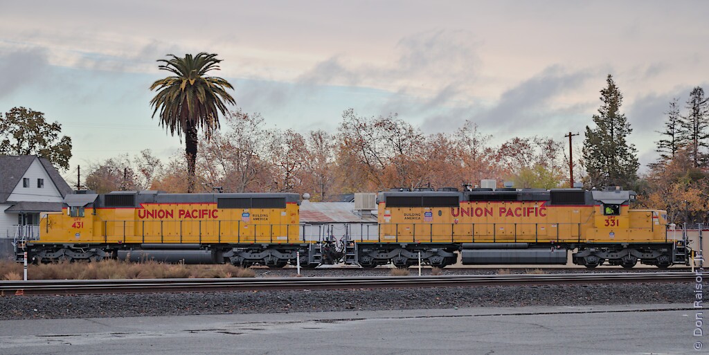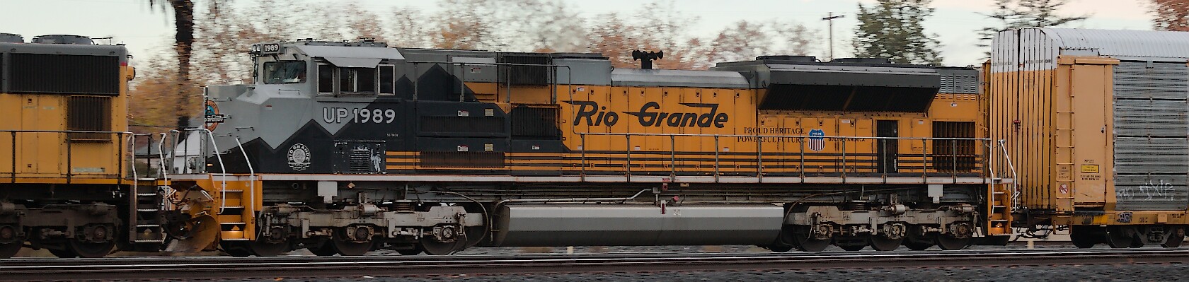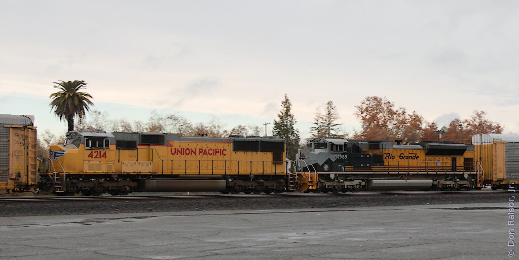 Union Pacific's heritage unit paying tribute to the fallen flag Denver & Rio Grande Western.