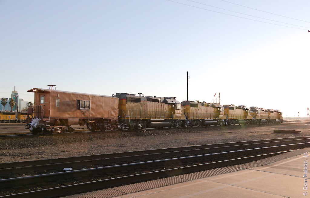 Photographs of locomotives, trains and other railroad equipment, mostly in the vicinity of the J. R. Davis Yard in Roseville California.