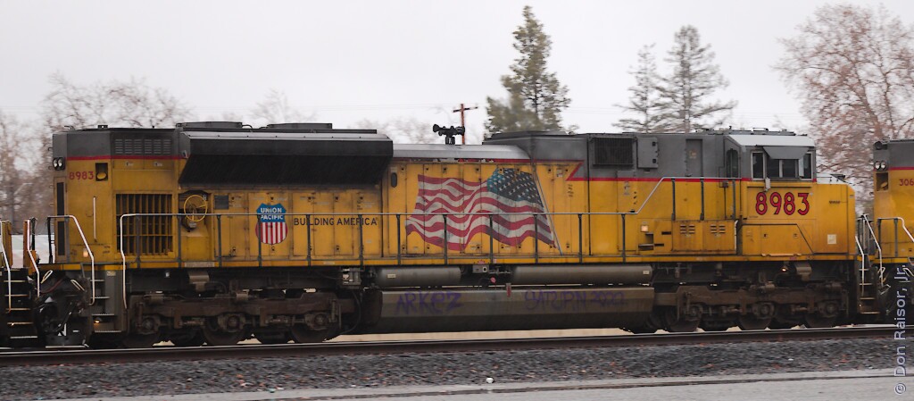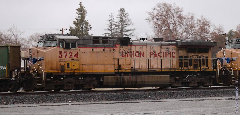 Photographs of locomotives, trains and other railroad equipment, mostly in the vicinity of the J. R. Davis Yard in Roseville California.