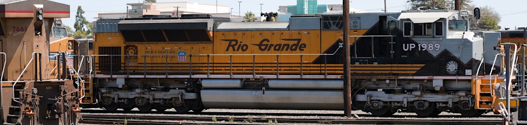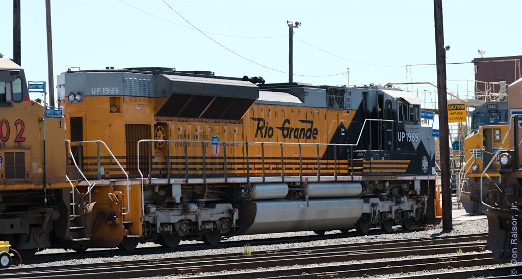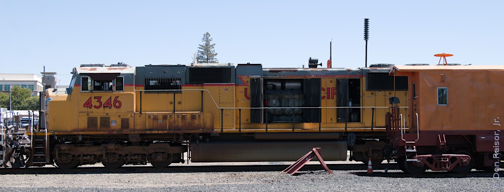 Photographs of locomotives, trains and other railroad equipment, mostly in the vicinity of the J. R. Davis Yard in Roseville California.