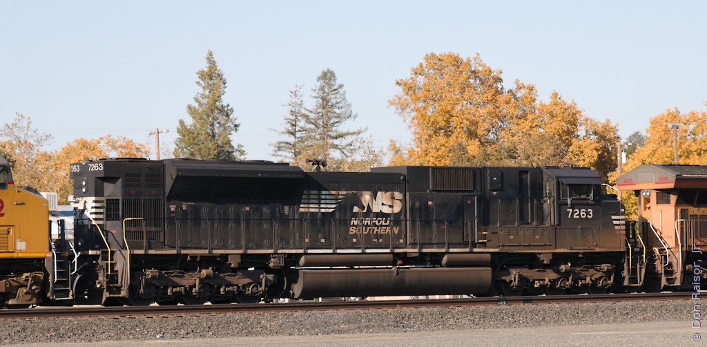 Photographs of locomotives, trains and other railroad equipment, mostly in the vicinity of the J. R. Davis Yard in Roseville California.