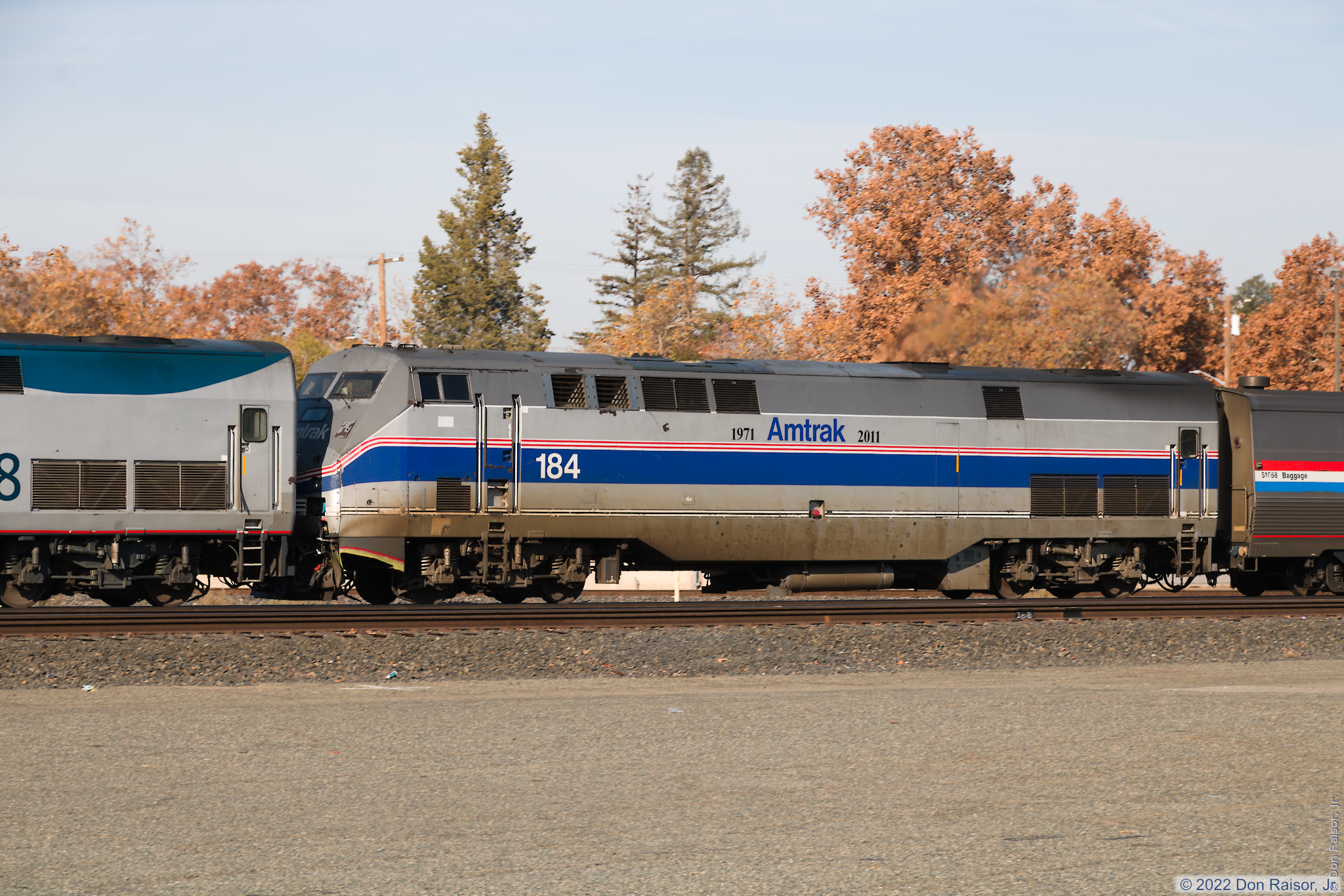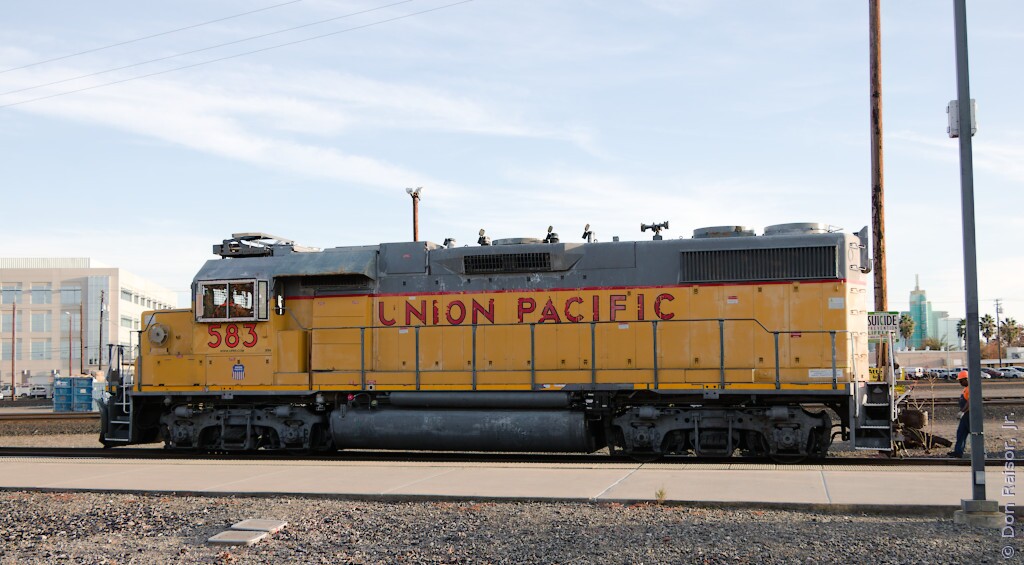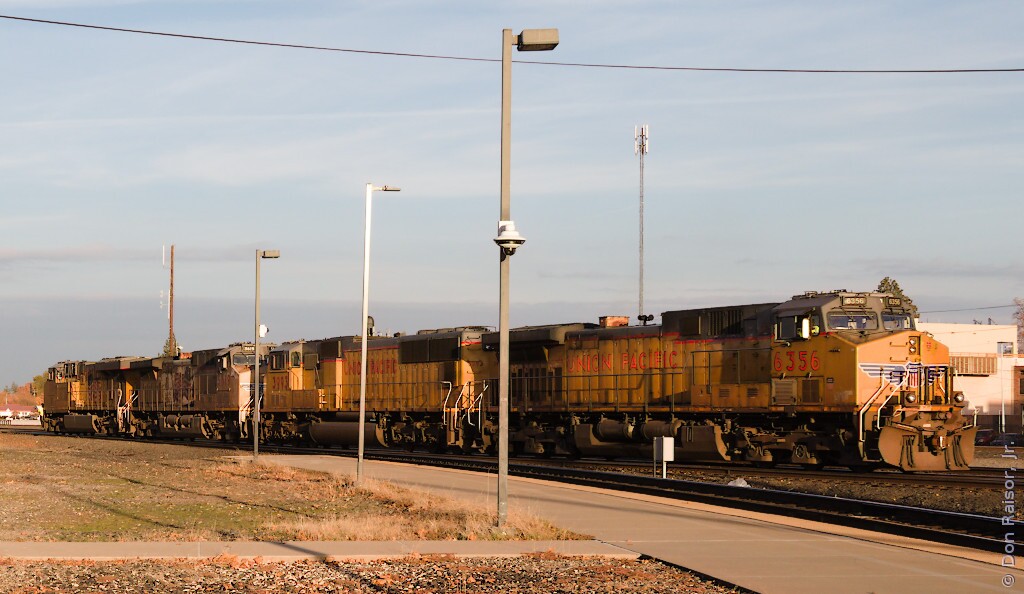 Photographs of locomotives, trains and other railroad equipment, mostly in the vicinity of the J. R. Davis Yard in Roseville California.