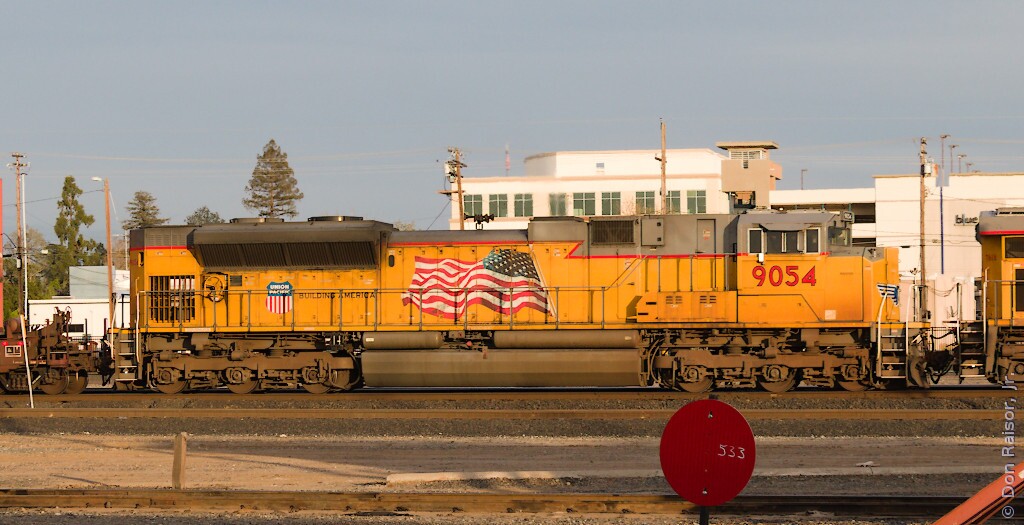 Photographs of locomotives, trains and other railroad equipment, mostly in the vicinity of the J. R. Davis Yard in Roseville California.