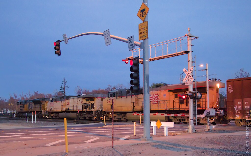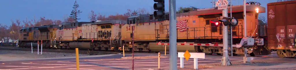 Photographs of locomotives, trains and other railroad equipment, mostly in the vicinity of the J. R. Davis Yard in Roseville California.