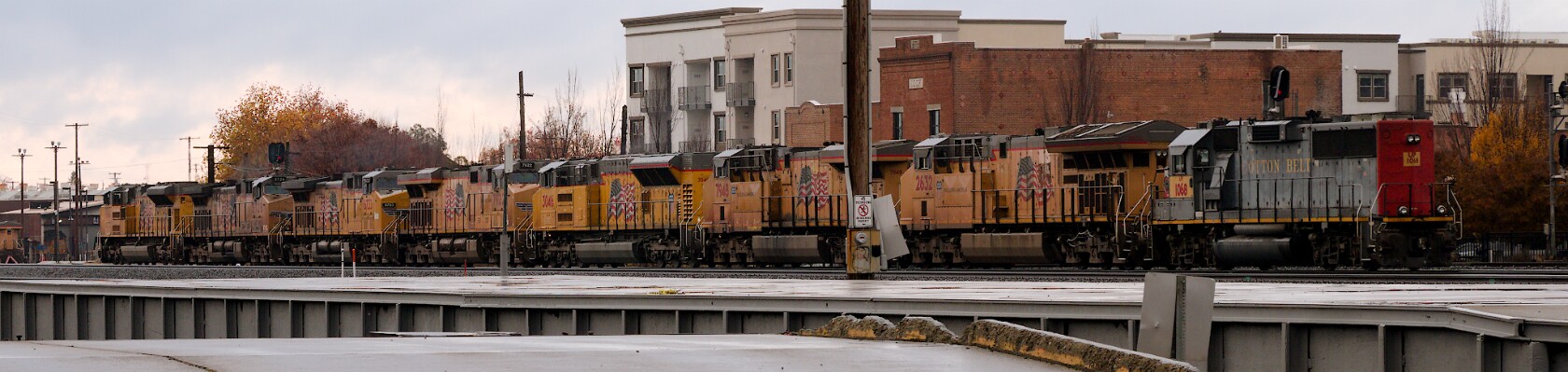 UP1068 is part of a light power move that is waiting for a proceed signal aspect.