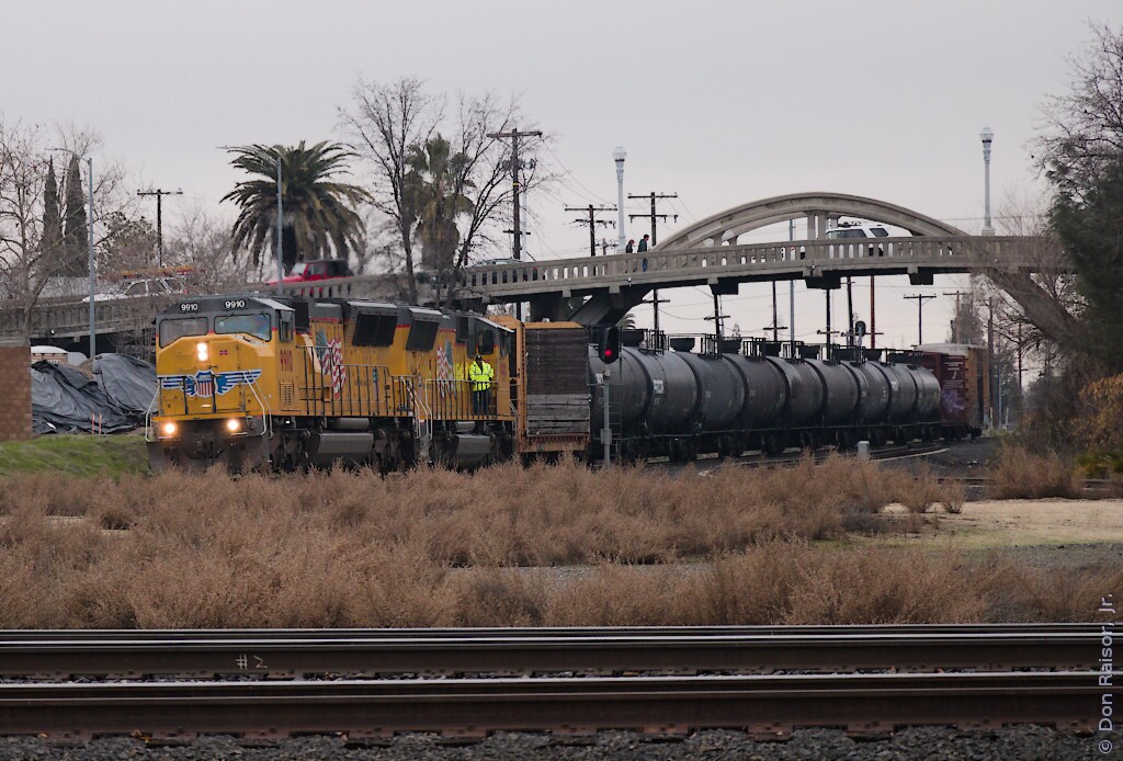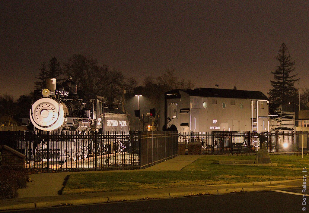 Photographs of locomotives, trains and other railroad equipment, mostly in the vicinity of the J. R. Davis Yard in Roseville California.