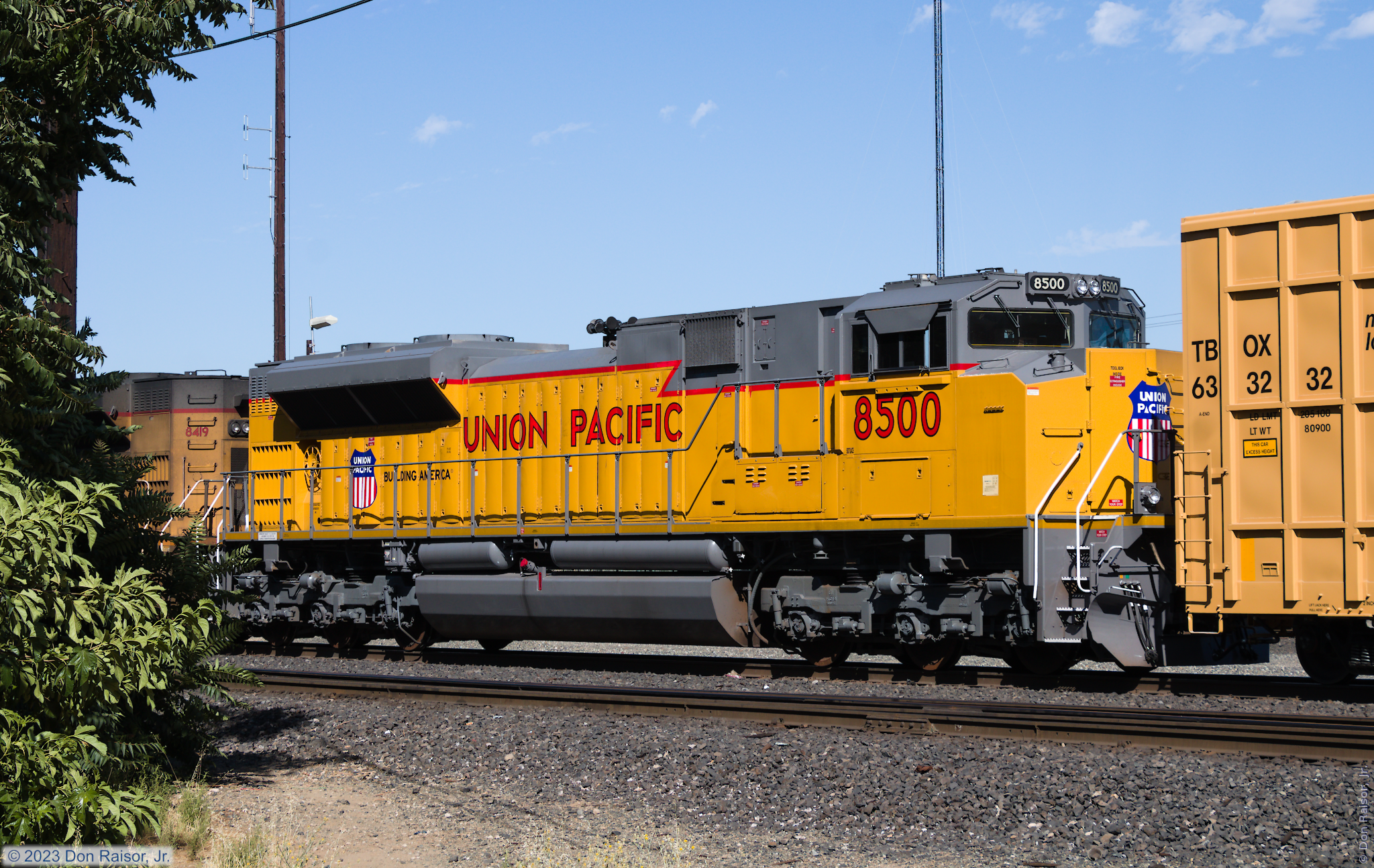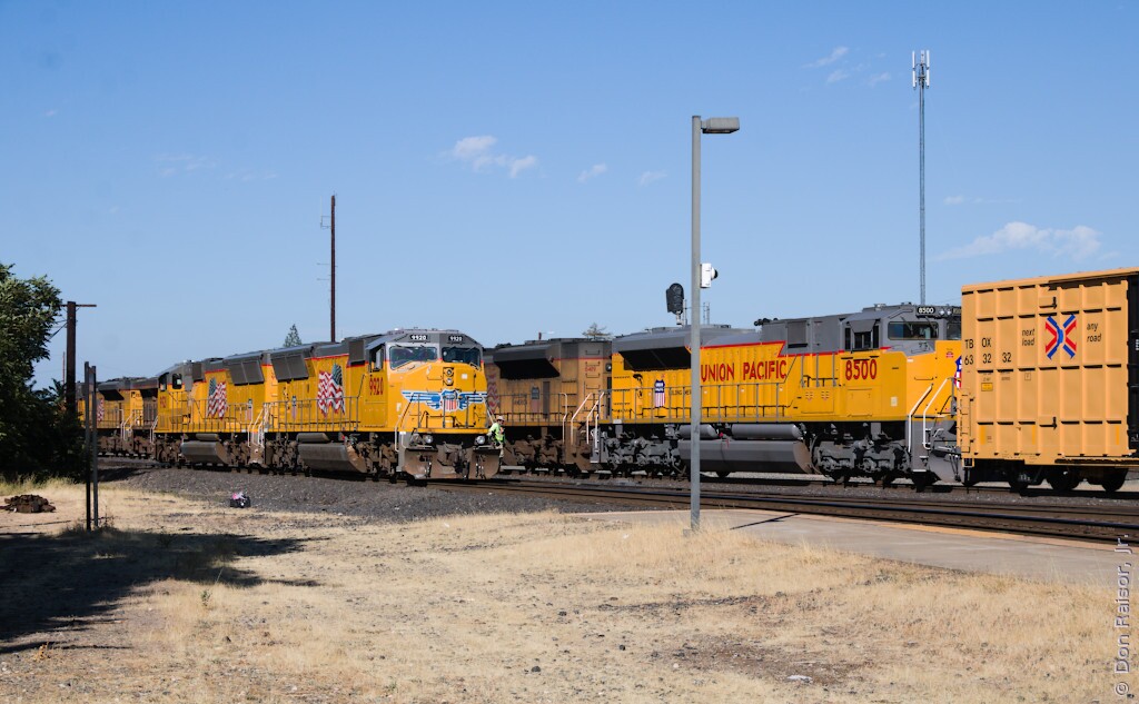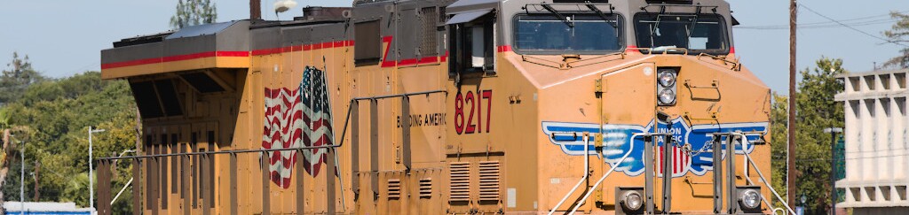 This is the early version of Union Pacific's updated paint scheme with the large shields, but this engine didn't get the flags on the side of the cab.