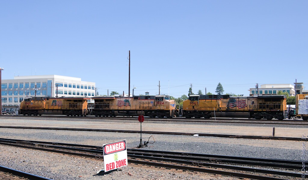 Photographs of locomotives, trains and other railroad equipment, mostly in the vicinity of the J. R. Davis Yard in Roseville California.