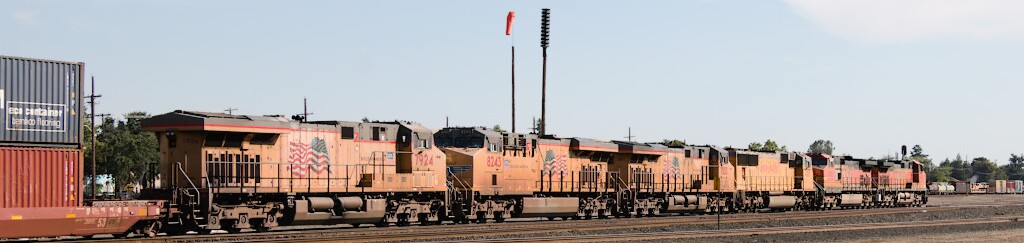 Despite appearances this train is a fairly short mixed manifest that happens to have two or three loaded well cars.