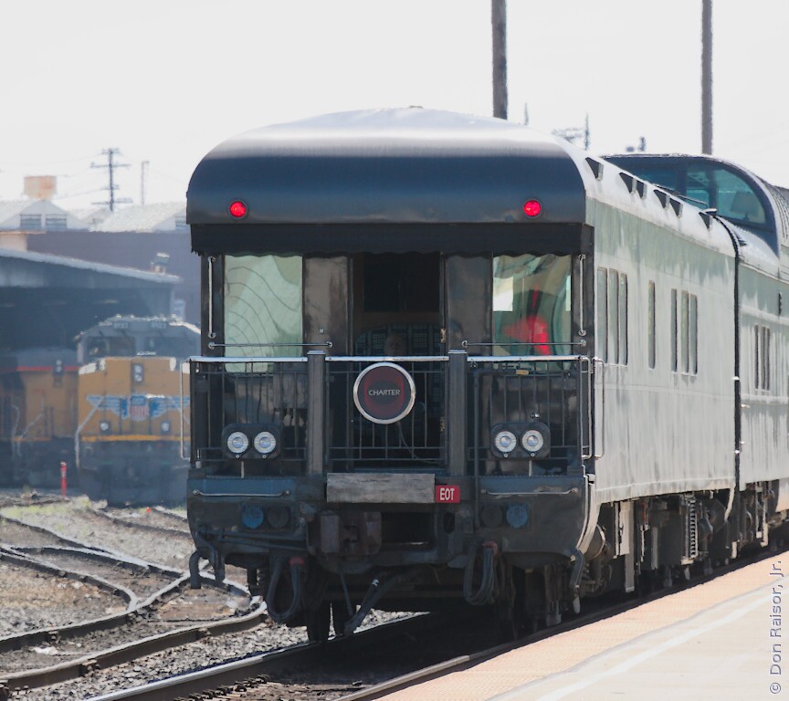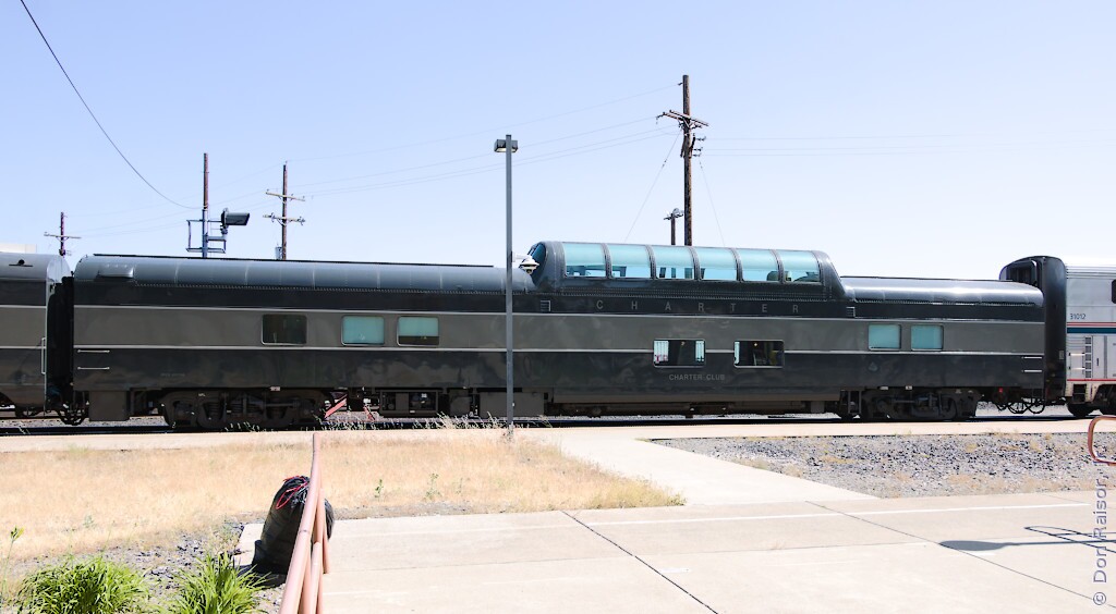 Amtrak's California Zephyr number five is pulling up to the platform.