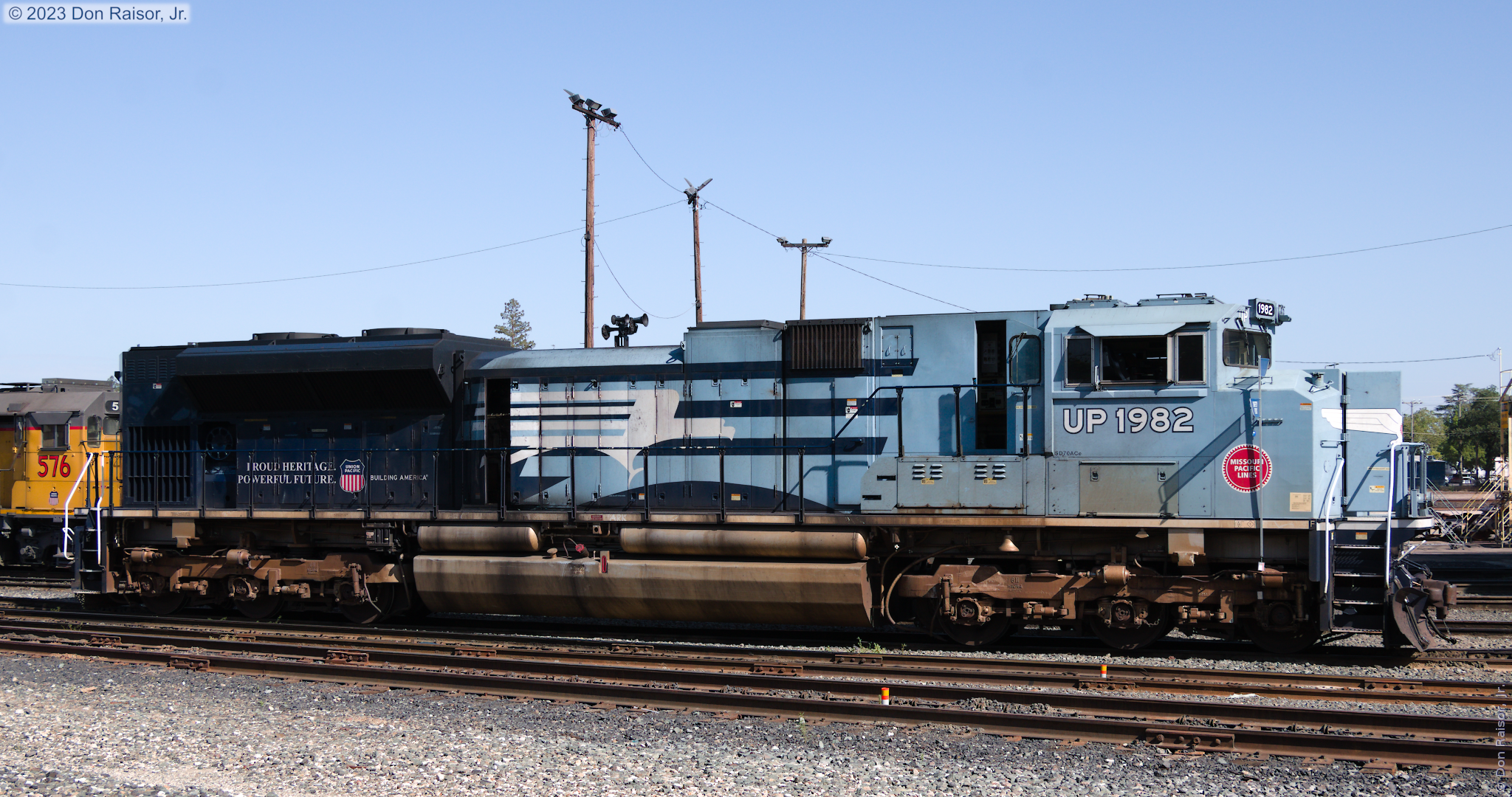 Heritage unit honoring fallen flag Missouri Pacific Lines. - UP1982 was being serviced just outside the shop, in front of the entrance to drop pit two.