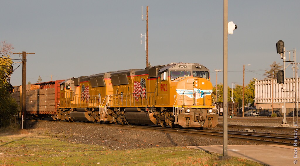 Photographs of locomotives, trains and other railroad equipment, mostly in the vicinity of the J. R. Davis Yard in Roseville California.