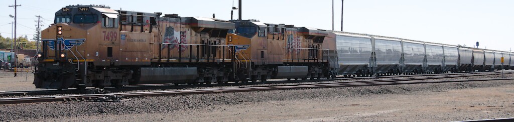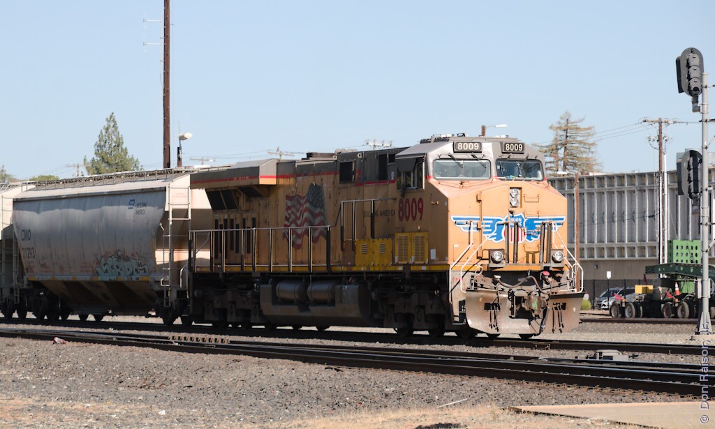 Photographs of locomotives, trains and other railroad equipment, mostly in the vicinity of the J. R. Davis Yard in Roseville California.
