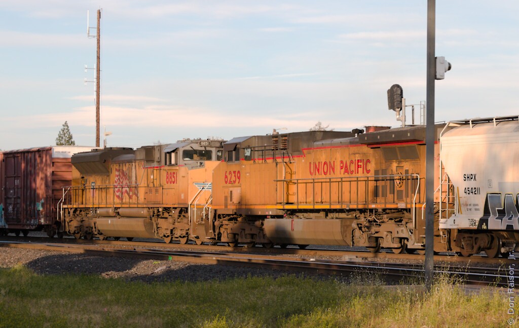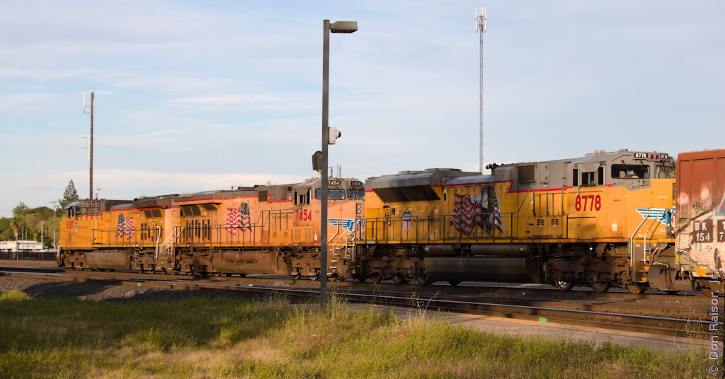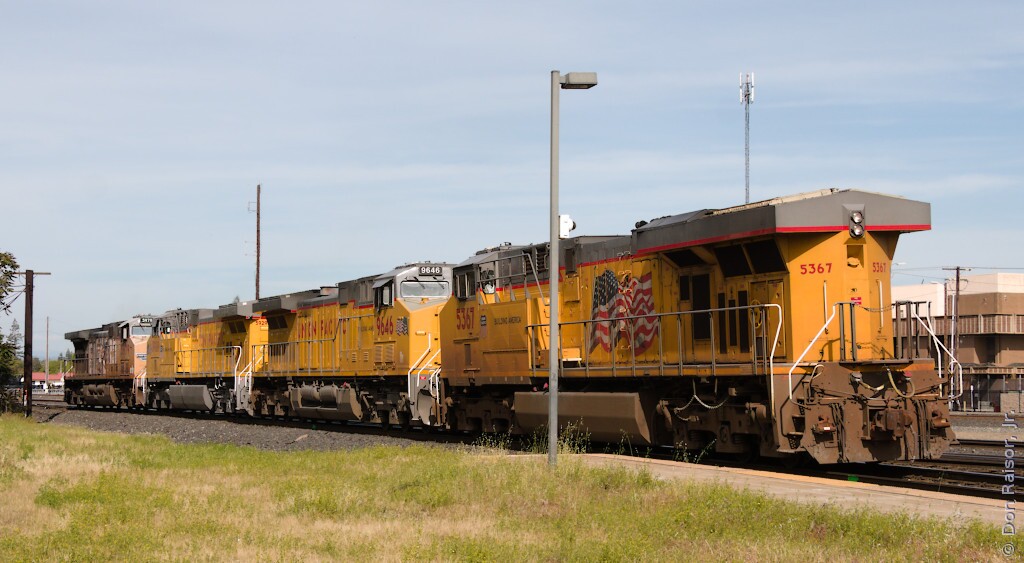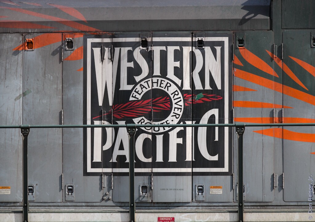 Union Pacific's heritage unit, paying tribute to the fallen flag Western Pacific, is seen here sitting on the east side of the repair shop.