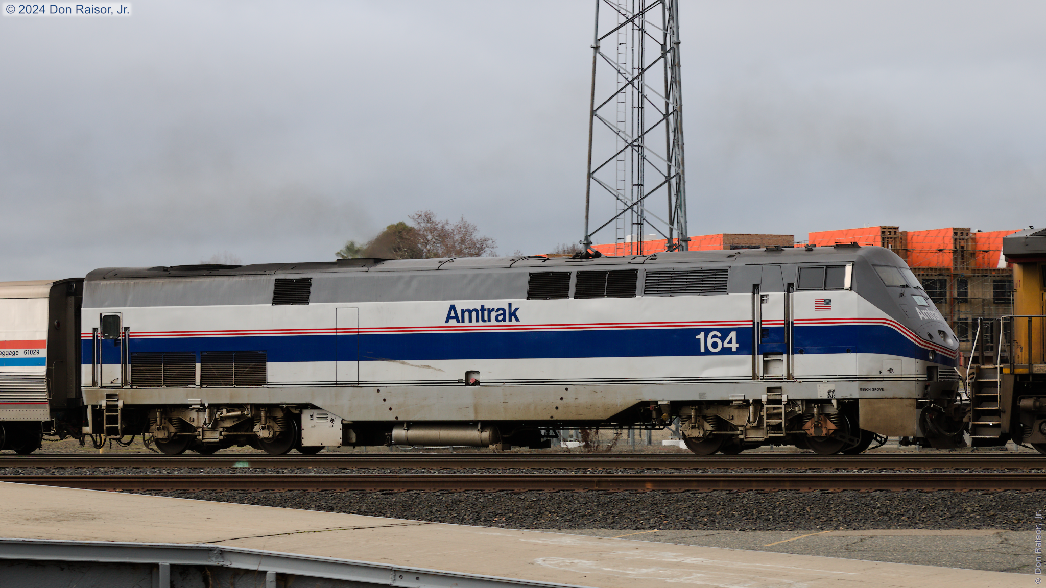 Amtrak six is picking up speed. AMTK164 is wearing the phase IV color scheme.