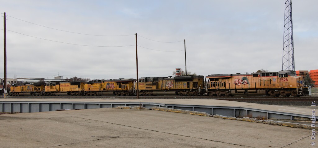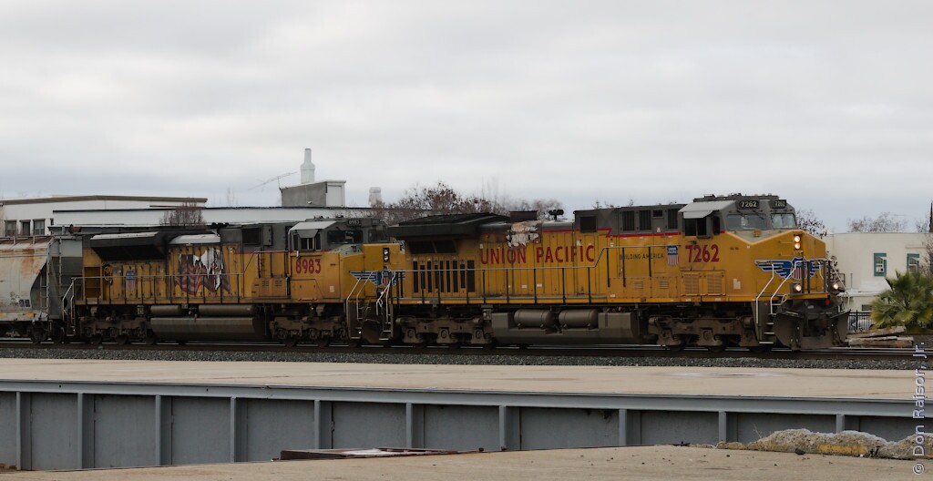 These two geeps are tied down on track 122. For those who are familiar with the area, it's near where they tie down the Rocklin Rocket's power at the end of a shift, along Atlantic Street.