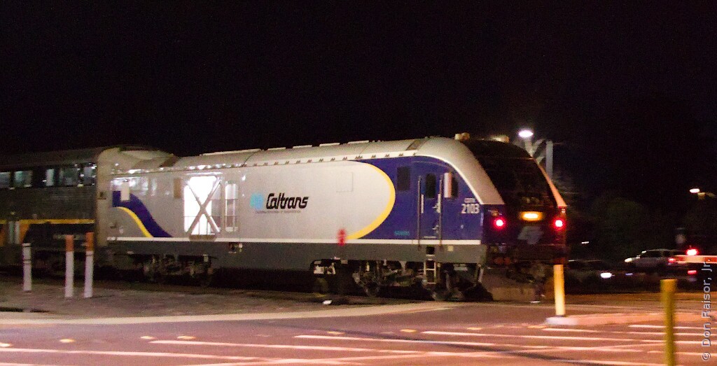 Amtrak California's Capitol Corridor 736 is heading for its last two stops on a chilly Saturday evening.