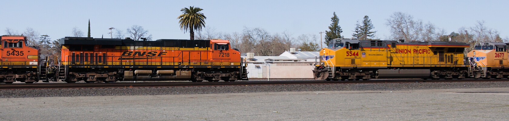 BNSF7218 (ES44DC) - BNSF5435 (DASH 9-44CW) -- UP5544 (C45ACCTE) - UP2677 (C45AH)