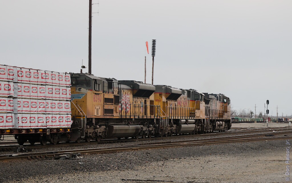 Photographs of locomotives, trains and other railroad equipment, mostly in the vicinity of the J. R. Davis Yard in Roseville California.