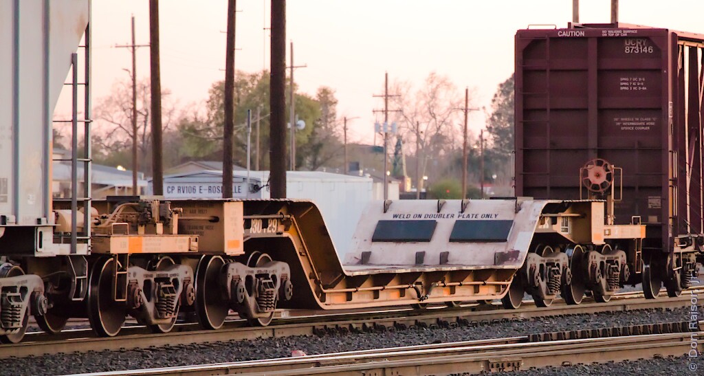 This depressed flatcar has eight axels and, of course, sixteen wheels.