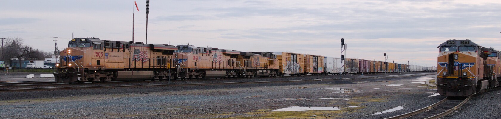 A mixed manifest (MRVNP 04) heading to North Platte Nebraska. UP2679 is the engine on the far right.