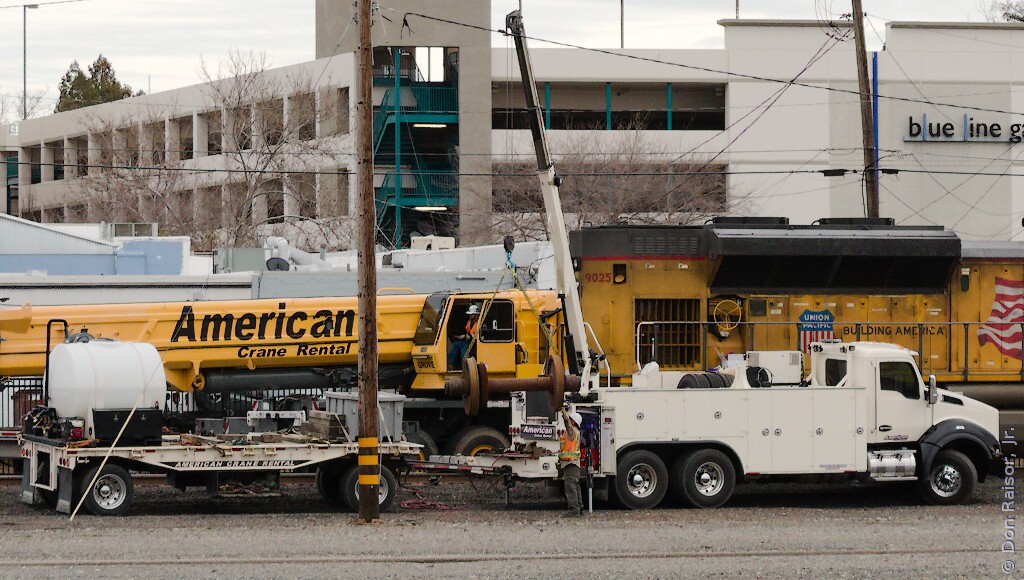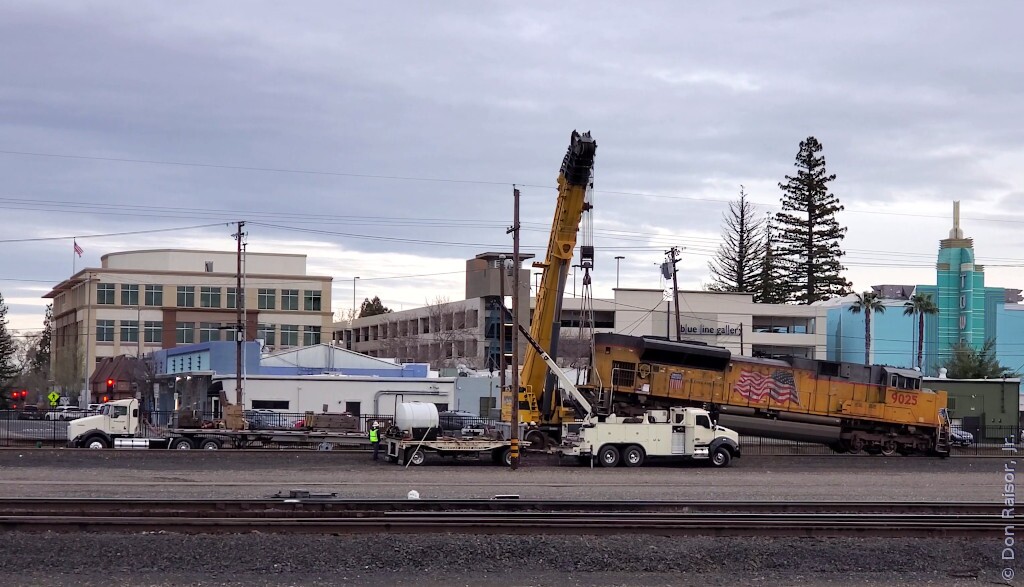 They lifted the end of this locomotive in order to remove a bad traction motor and wheel set, and replace it with a wheel set without a traction motor.