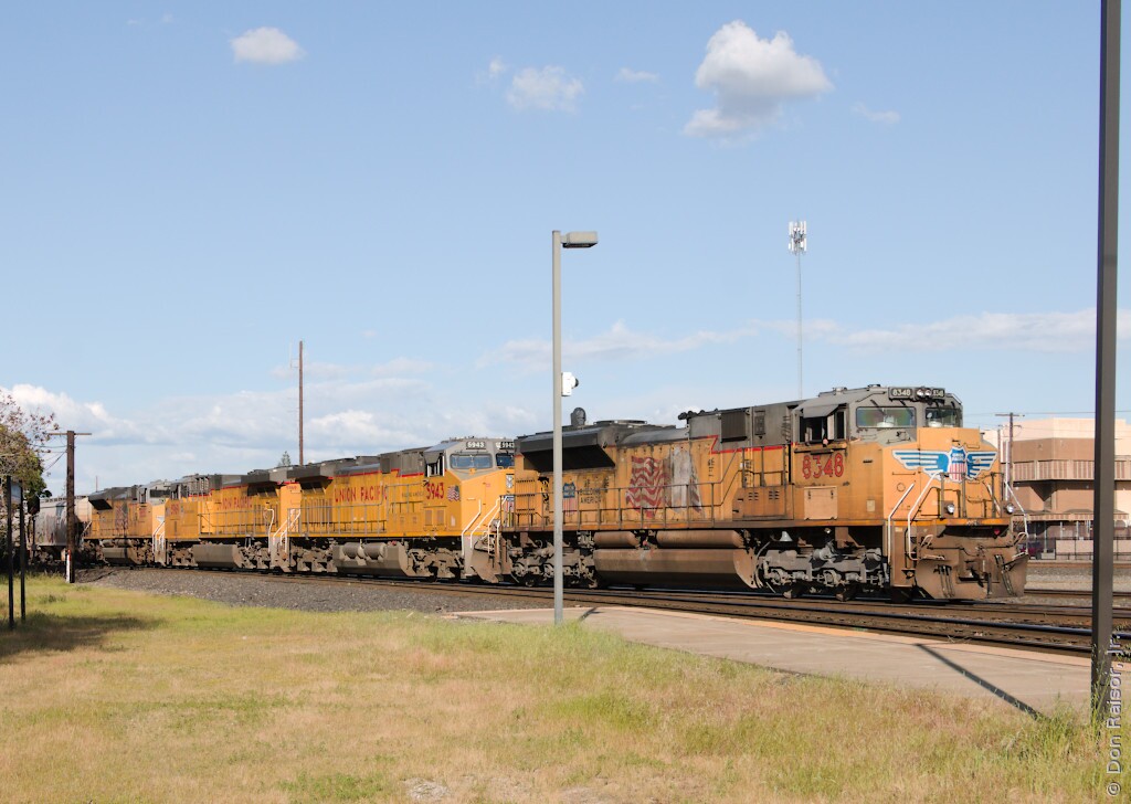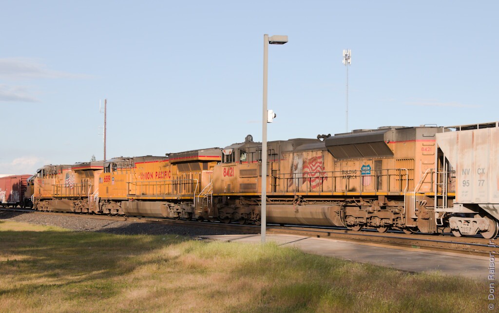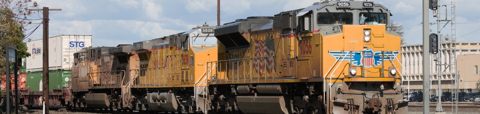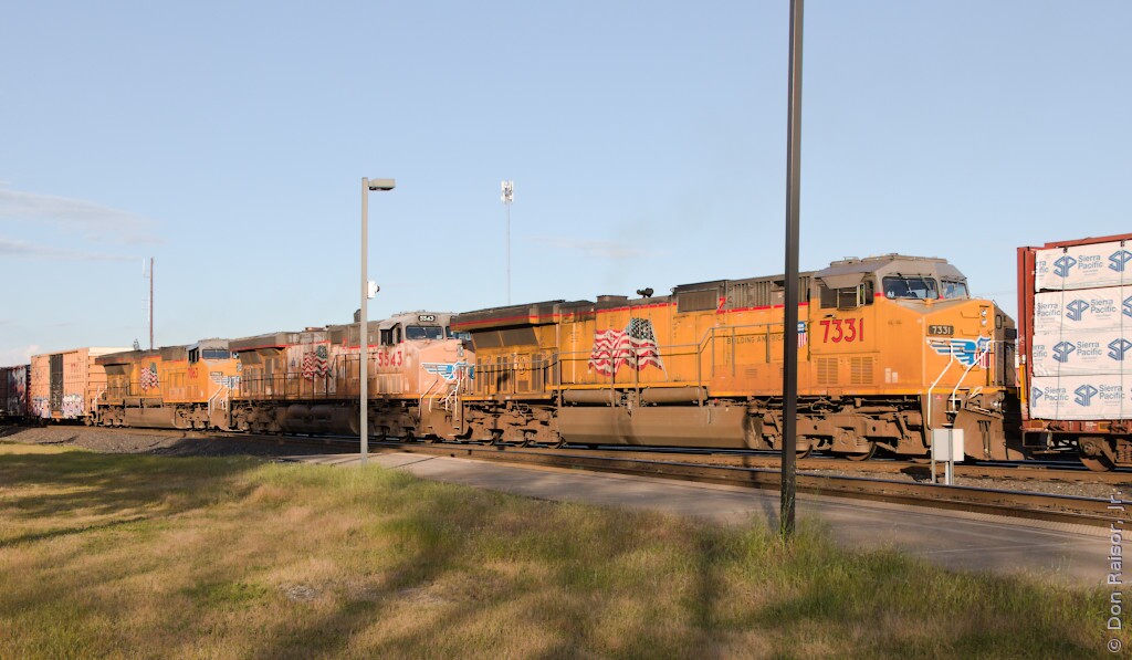 The Folsom Turn has shoved out of the City Yard onto main track two and is seen here waiting for MRVSP to cross over in front of it before it heads west.