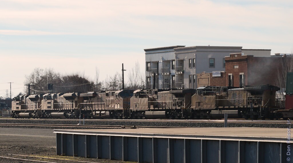 Flying fairly low over the rail yard.