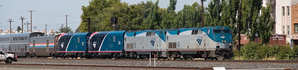 California Zephyr number six is pulling away from the station with two new Siemens ALC-42s.
