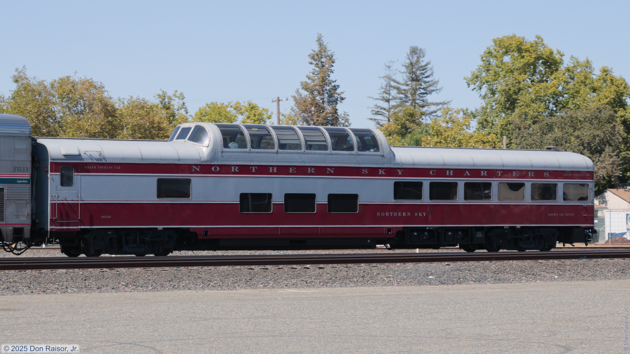 Northern Sky Charters' private rail car Northern Sky on the end of the California Zephyr.